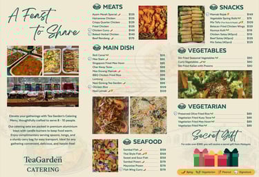 Elevate your gathering with Tea Garden's Catering Menu, thoughtfully crafted to serve 8-10 people.